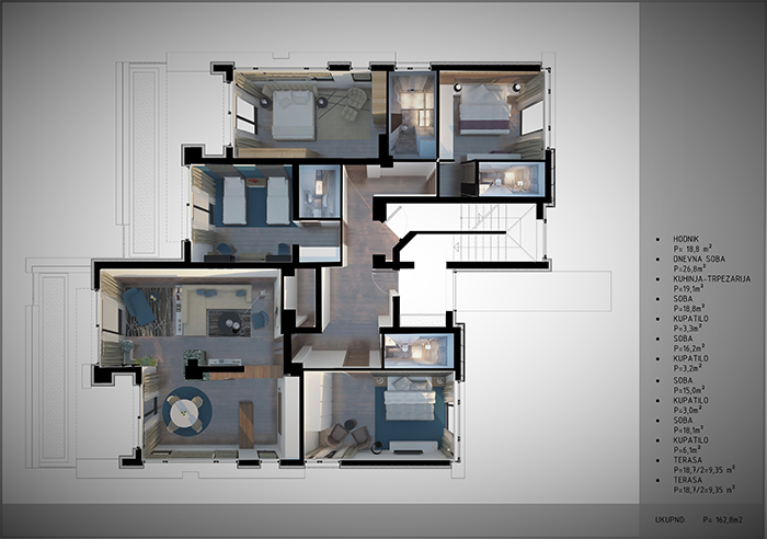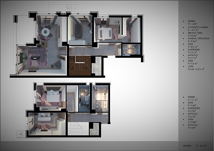 DVOETAŽNI STAN *Napomena: Klikni na prostoriju koju želiš da vidiš na tlocrtu.*