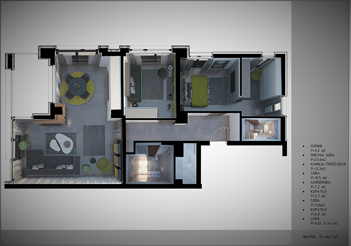 VELIKI STAN *Napomena: Klikni na prostoriju koju želiš da vidiš na tlocrtu.*